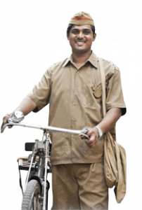 पोस्टमन, “तसे चालणार नाही, रजिस्टर पत्र आहे. सही लागेल”