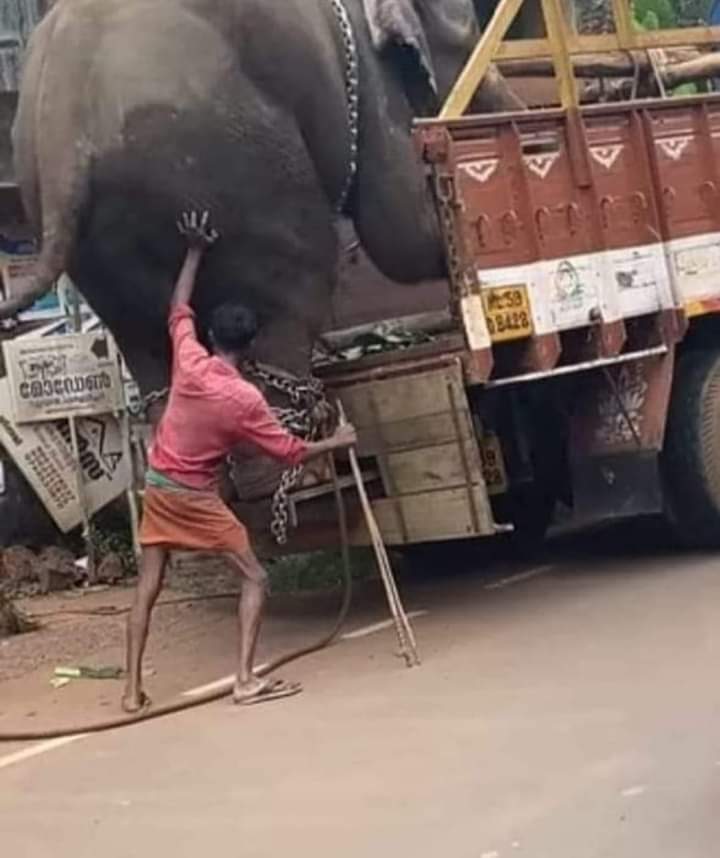 पण, पाठीमागून हात ठेवल्यामुळे, हत्तीला विश्वास वाटत होता की, आपला मालक आपल्याला मदत करत आहे म्हणून हत्ती स्वतःला सहजतेने ट्रकवर चढवून घेत होता.