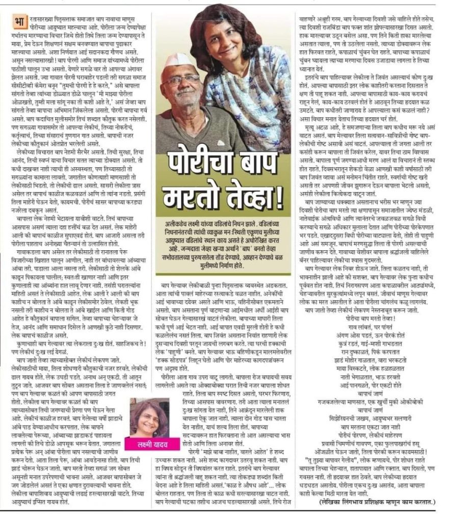 рдХреБрдгрд╛рдЪрд╛рд╣реА рдмрд╛рдк рдЧреЗрд▓реНрдпрд╛рд╡рд░ рддреНрдпрд╛ рд▓реЗрдХрд░рд╛рд▓рд╛ рджреБ:рдЦ рд╣реЛрддрдВ. рд╕рд╛рд╣рдЬрд┐рдХрдЪ рддреЗ! рдкрдг рд▓реЗрдХреАрдЪрдВ рджреБрдЦ: рд▓рдИ рдпреЗрдЧрд│рдВ.