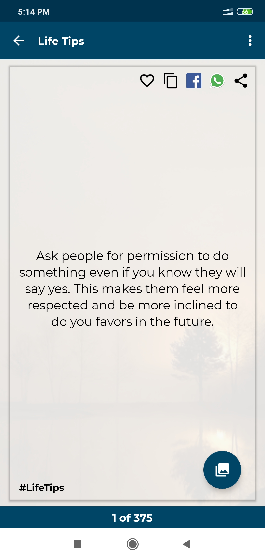 This life tips app is a free and easy-to-use application that contains tons of life tips in different categories such as technology tricks, health, drinks, money savers, etc. With these life tips, you can learn a lot of knowledge and tricks to make your life easier and happier. You will find this app very helpful, and also you can share life tips with your classmates, or friends via Facebook, WhatsApp, and other social apps easily. Here are some tips for example: